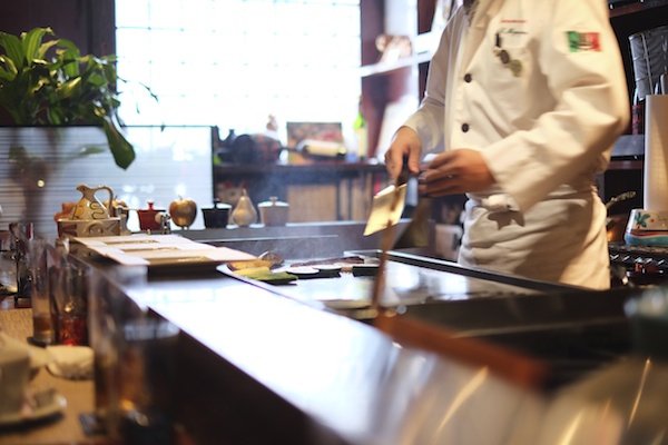 ◎鉄板の向こうでは、怖そうなシェフがジュージューステーキを焼いてます…