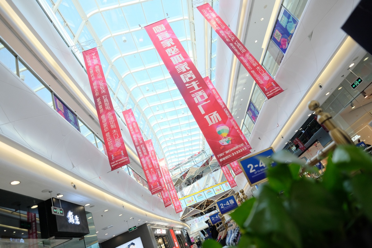 ◎天井が硝子になっていて太陽の光が降り注ぐモール内…