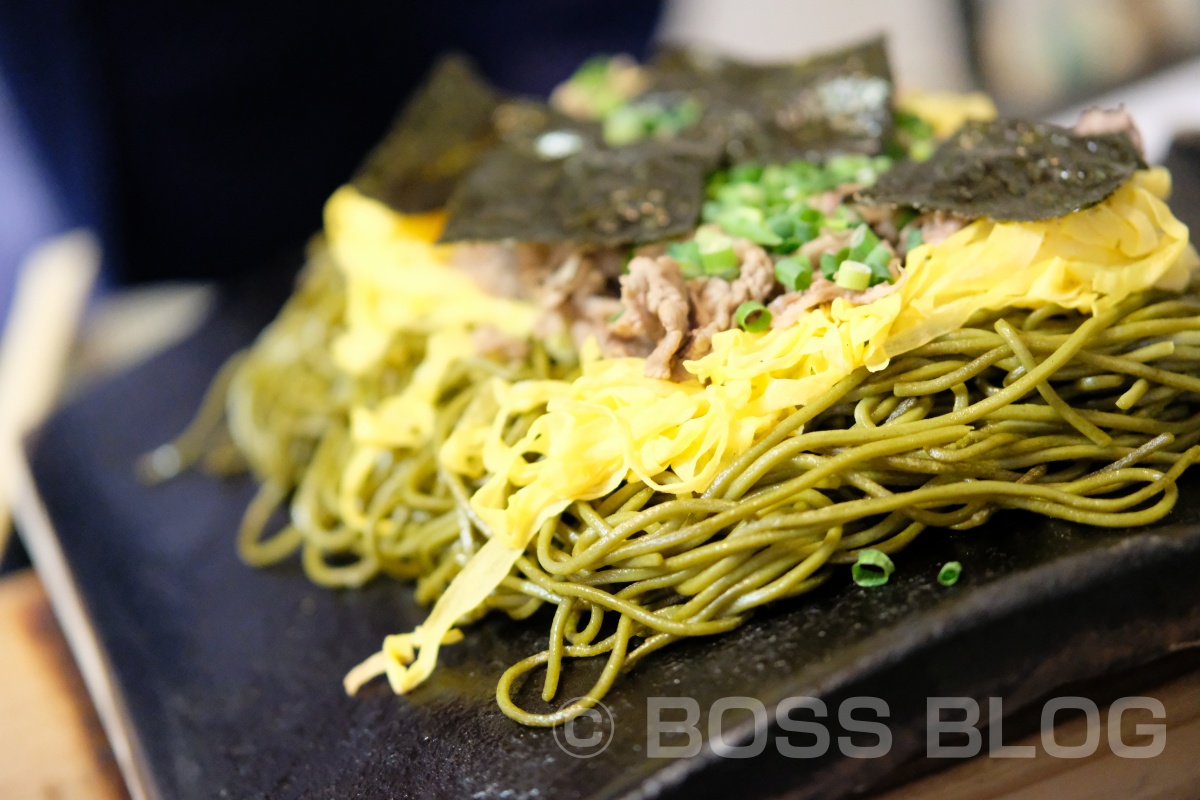 熱々の瓦で香ばしく焼かれた茶そばが美味い!