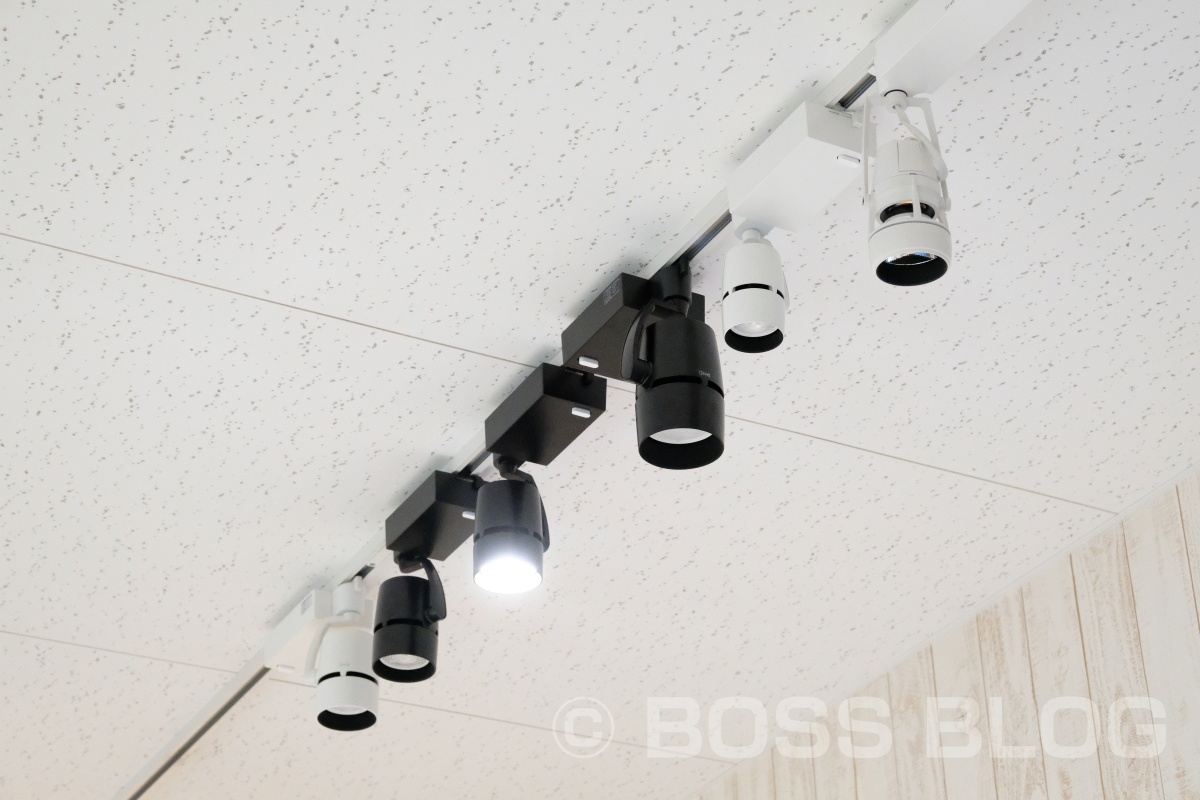 ◎ダクトレールに設置するスポットライトだが、調光が器具一台一台で調整できる器具で
