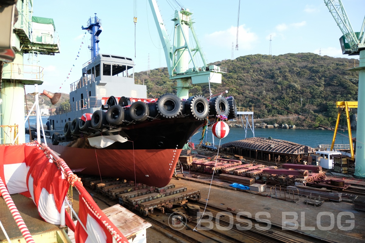 ◎小門造船鉄工株式会社さんがつくった株式会社那覇タグサービスさんのタグボートの進水式に参加させて頂きました