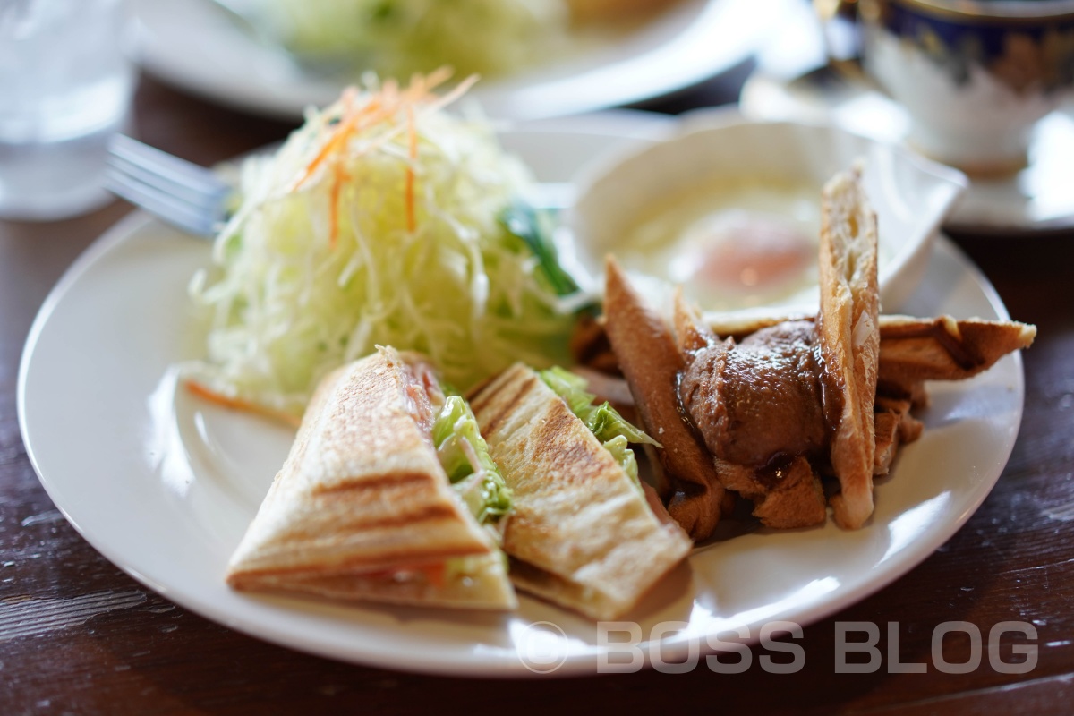 ◎たっぷりサラダに手づくりホットサンドとシナモンバターに